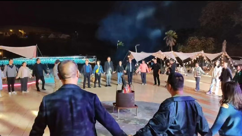 除了緊張刺激的團隊游戲,晚上的篝火舞會和卡拉OK活動也為團建增添了濃厚的氛圍。在熊熊篝火的映照下,大家牽手一起歡呼,一起跳舞,開心游戲,揮舞小煙花,暢談笑語,盡情享受這美好時光。此時此刻,衡糧集團大家庭的成員們就是一家人,彼此關心、互相扶持,共同創造了一個個難忘的回憶。